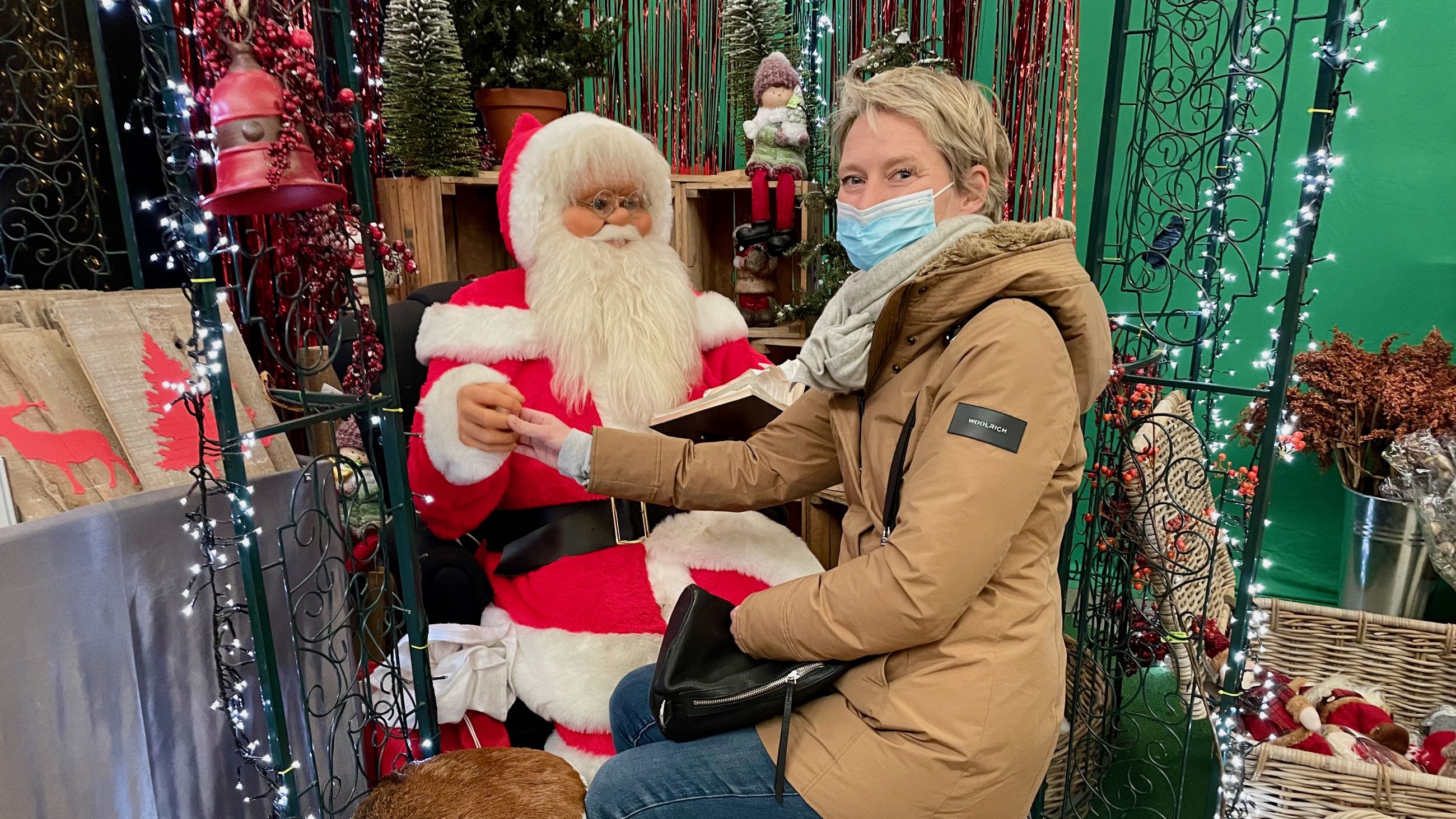 Zoals je ziet hebben we op deze foto al een kerstboom. Dat is ons nog net gelukt om die voor de lock down naar binnen te slepen. En ik mocht in het Tuincentrum ook even met de kerstman op de foto.
