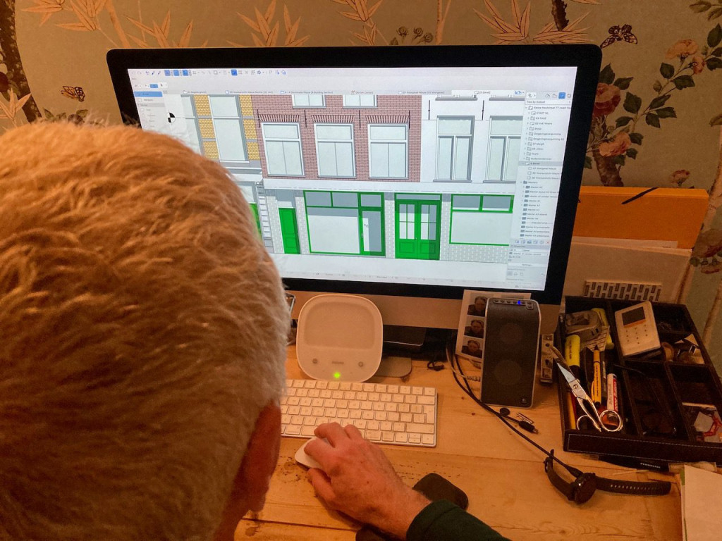 Erfgoed had gelukkig de achterkant al goedgekeurd. Hoe totaal bijzonder was het dat toen opeens Welstand, los van Erfgoed door de bocht kwam over de achtergevel. Die zou toch meer bij de voorgevel moeten passen, dus graag geen openslaande deuren tot aan de grond, maar een zijdeur en een raam met borstwering. Prima. Doen we toch lekker een nieuwe tekening?