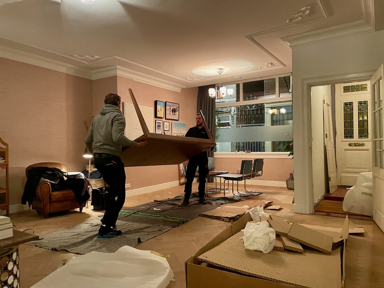 “Ik wilde eigenlijk een ronde tafel” sprak de wat oudere dame (type echtgenote van Lee Towers) met plat Rotterdams accent toen zij binnenstapte om de gigantische langwerpige tafel bij ons op te halen. Zij kwam mee met de man die via Marktplaats ons laatste item, de tafel, had gekocht. Wij vonden dat al vrij vreemd, maar nog aparter was het dat ze de lift waarin de tafel bij hem thuis naar boven moest niet hadden opgemeten. Hij woonde acht hoog. Of wij misschien dachten dat ze hem over de trap konden tillen? De tafel kregen wij moet moeite met vier personen in hun busje. Wij hebben het probleem verder bij hen gelaten. Hessel werd de dag erna zeer positief gereviewd op Marktplaats, dus het zal wel goed gekomen zijn. Mogelijk was dat ook omdat we de tafel tevoren nog even helemaal bijgewerkt hadden..