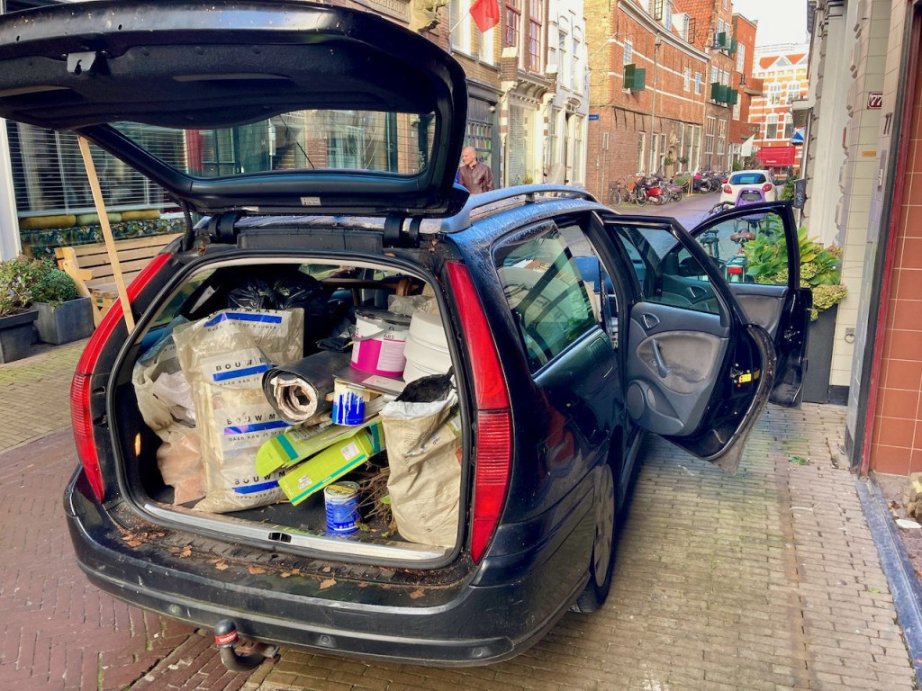 Voor de kerst willen wij ook altijd graag dat dingen ‘op orde’ zijn. Dus nu de steigers weg waren, konden we al het bouw materiaal en allerlei andere losse troep uit cabine 2 weggooien. Hiervoor leenden wij de stationwagon van mijn ouders, die binnen no time helemaal vol zat.