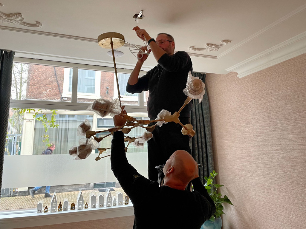 En zo rollen we langzaam de kerstdagen in. Eergisteren zou de nieuwe lamp boven de tafel komen in de middag. Hoe leuk dat deze in de ochtend (maar op een Christelijk tijdstip) al kwam. Het is een wonder van schoonheid.