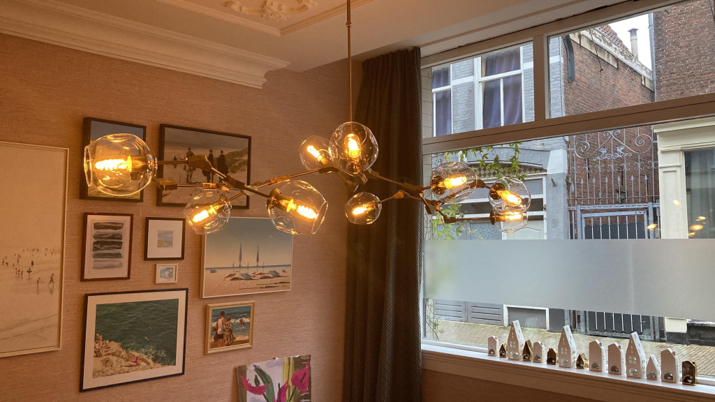 En zij-verlichting aan de muur, en Hessel haalde nog een oude lamp van hem op uit Amsterdam.