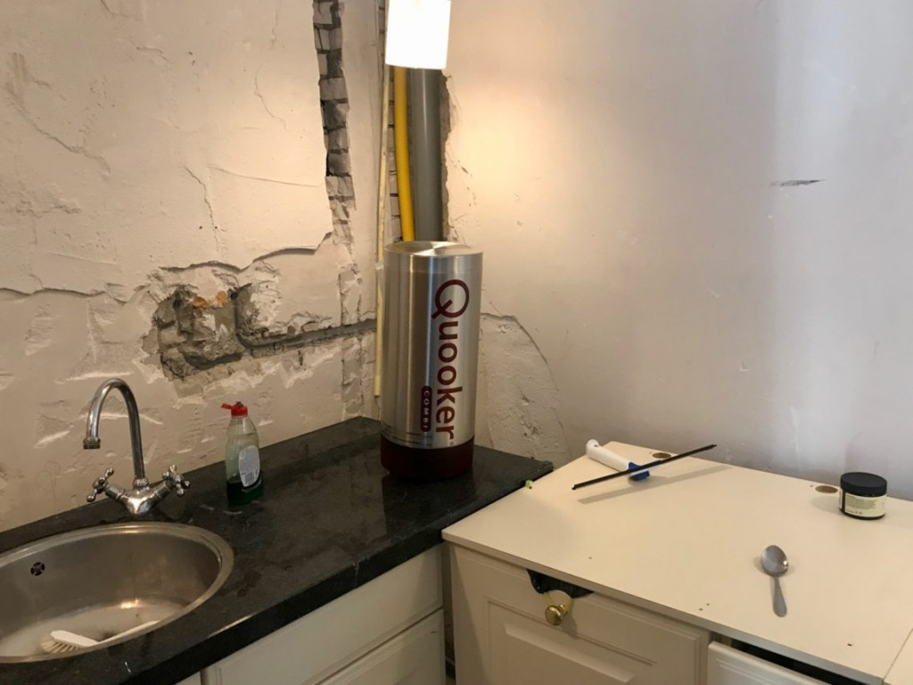 Net zoals het met minister Zijlstra gisteren nog niet klaar was, ging bij ons vandaag ‘het keukenkastje dramaatje’ nog even door. Aangekomen in Haarlem vergaderden wij eerst samen over de maat van de kast. Moest dit eigenlijk 1.25 breed zijn, of was 1.00 meter genoeg? Hessel haalde de quooker van boven om even goed de maat te zien van het object dat in het kastje komt te staan.