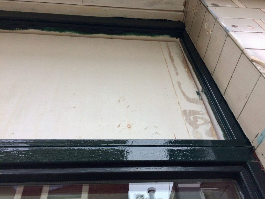 Vandaag was ik weer even in Haarlem, om de verwarming 5 graden hoger te zetten. Omdat ik dan ook meteen een klusje wil doen, heb ik het kozijn voor de eerste keer in de groene verf gezet.