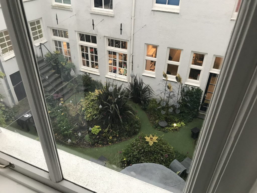 en een mooie binnentuin met daarin allerlei vrolijke kunstobjecten.