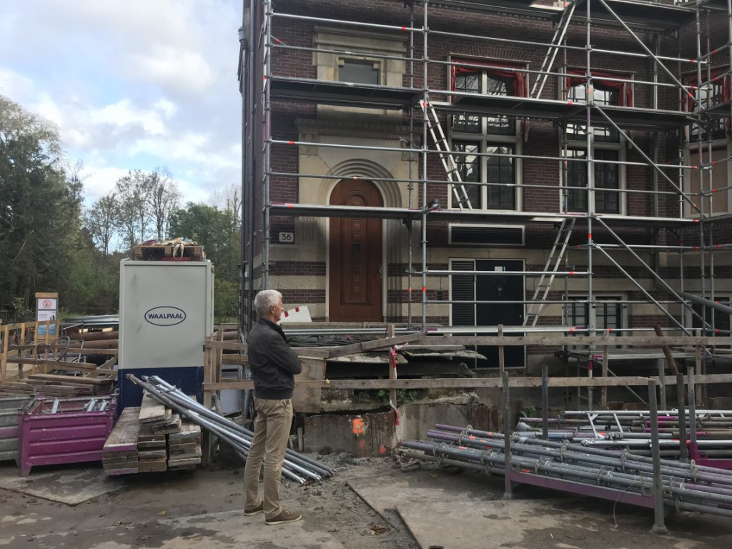 We vervolgden onze weg naar de Willemsparkweg, waar nu eindelijk op de hoek ook een pand wordt aangepakt, maar Hessel kon gelukkig nog goed naar binnen kijken of alles goed ging 🙂 Daarna even langs de PC Hooftstraat waar ze hele mooie verbouwingen doen momenteel. Gebouwen van 3 a 4 panden breed worden als het ware met gevels in oude stijl helemaal opnieuw opgebouwd. Heel smaakvol en met respect voor de omgeving. Er was aan het begin van de straat een jongeman bezig om met een robotkraantje nieuwe betonnen funderingsplaten in metalen balken te leggen. Toen Hessel vroeg hoe dat allemaal zat, bleek dat er onderin het pand een soort betonnen bak wordt gegoten en daarop, eigenlijk daarin, wordt het pand als het ware ‘gehangen’. Het valt mij op hoe leuk die werklui het altijd vinden om een praatje te maken. Ze zijn echt trots op hun klus. Mooi is dat.