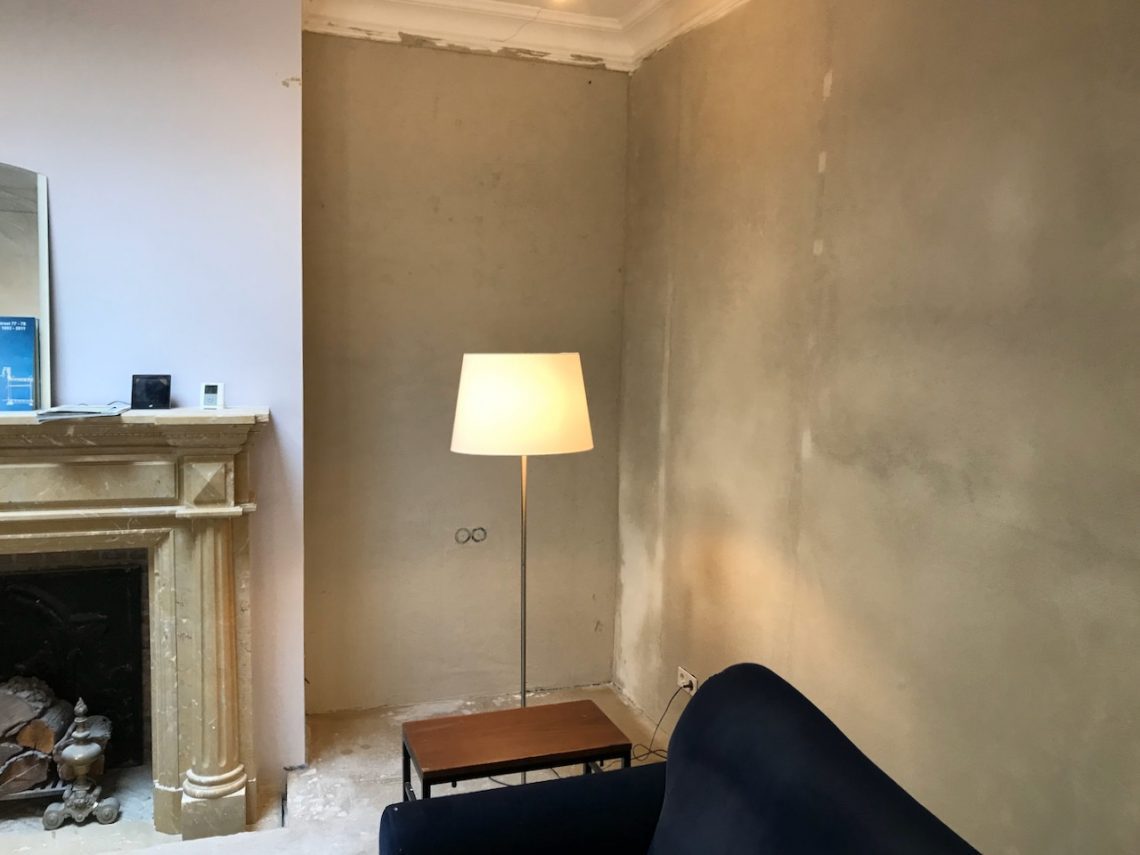 Ze kon het niet geloven dat ze het niet gezien had. Het zag er zo natuurlijk en normaal uit, vond ze, dat het voor haar net leek alsof die muur altijd al zo geweest was. Eigenlijk is dat ook wel zo. De eerste stukadoor dagen hadden een soort opwinding in zich, met een paar banen strak wit op een oude gele muur. Maar nu de woonkamer min of meer af is, merk je er eigenlijk niks meer van. Behangetje er op, en verhuizen maar!