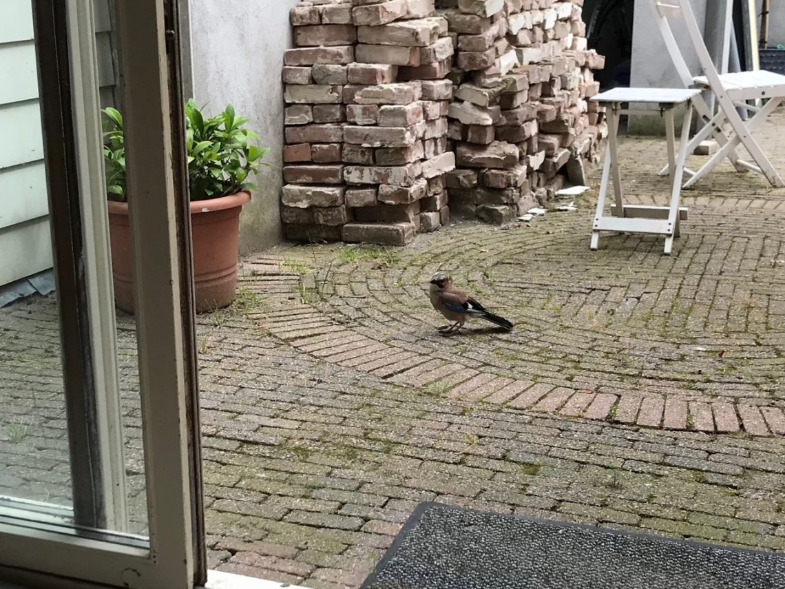 Maar beste Hessel, zo hoor ik u vragen, wat heeft dat allemaal te maken met de foto bovenaan dit blog? Dat antwoord moet ik u schuldig blijven. Het is waarschijnlijk een hele rare stofvogel. Nadat het huis doorgelucht was, en nadat de zon weer was gaan schijnen, hipte hij zomaar tot aan de drempel van onze keuken en keek even rustig rond. Hij knikte met zijn kopje, omdat hij zag dat alles goed was, en vloog toen weer de wijde wereld in.