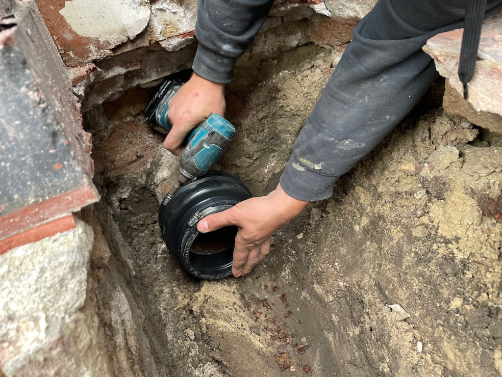 Vrijdagmiddag zaten we net op de bank te bespreken dat alles voor het weekend afgerond was toen de telefoon ging. Het was Bart. ‘Hessel ben je thuis, want ik zit nu op de A9 en ik kan even langsrijden om die pijp te vervangen’. Hoe tof is dat. Bart kwam, zag en verving de oude stalen pijp voor een mooi stuk PVC pijp.