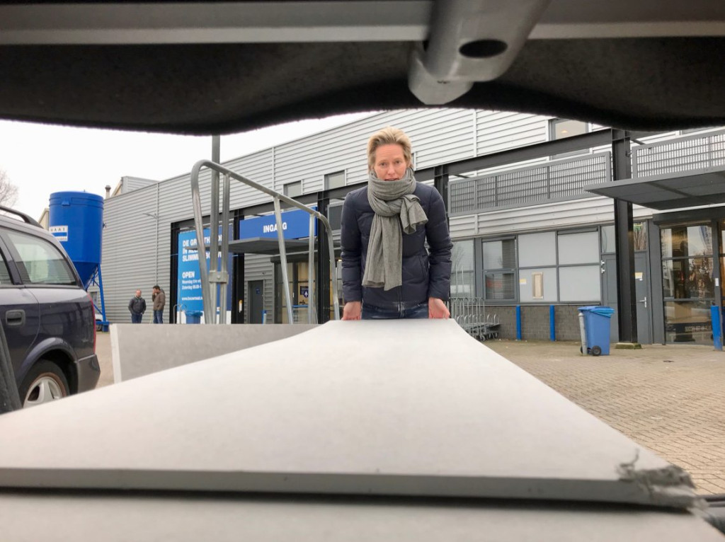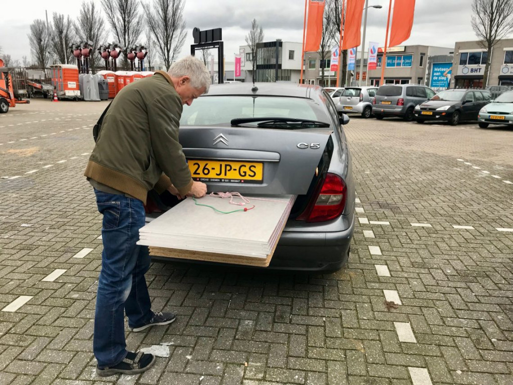 Samen konden we de platen heel makkelijk opladen, betalen en weer in de auto overladen.