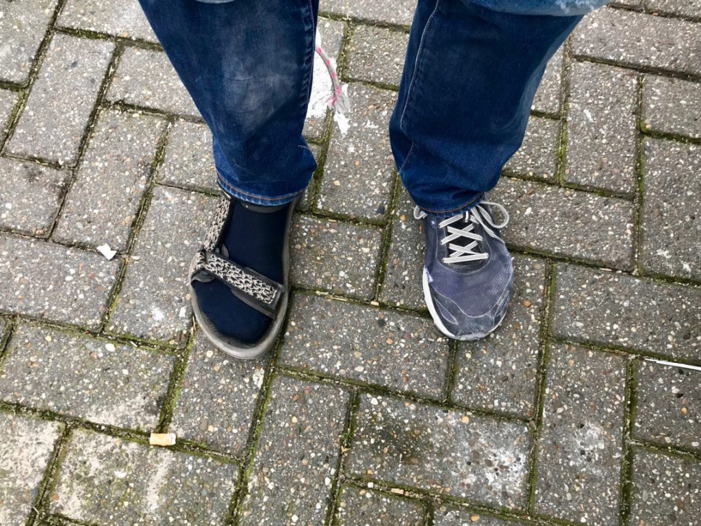 Dit deed ik ook om de aandacht van Hessel af te leiden. Hij loopt namelijk sinds Kerst met een voet op een gezondheidssandaal met sokken. Hij heeft namelijk bij het verslepen van de kersttafel zijn nagel van zijn grote teen geslagen. Gelukkig droeg hij vandaag niet zijn normale vrolijk gekleurde Paul Smith sokken en viel het niet zo op. Toen we vorige week op de heide liepen vertelde hij dat het eigenlijk heel erg lekker liep, sandalen met sokken. En hoewel ik hem accepteer zoals hij is, doemde er toch het beeld op van oudere man met witte sportsokken in sandalen waar ik dan nog hopelijk 30 jaar naast mag lopen…