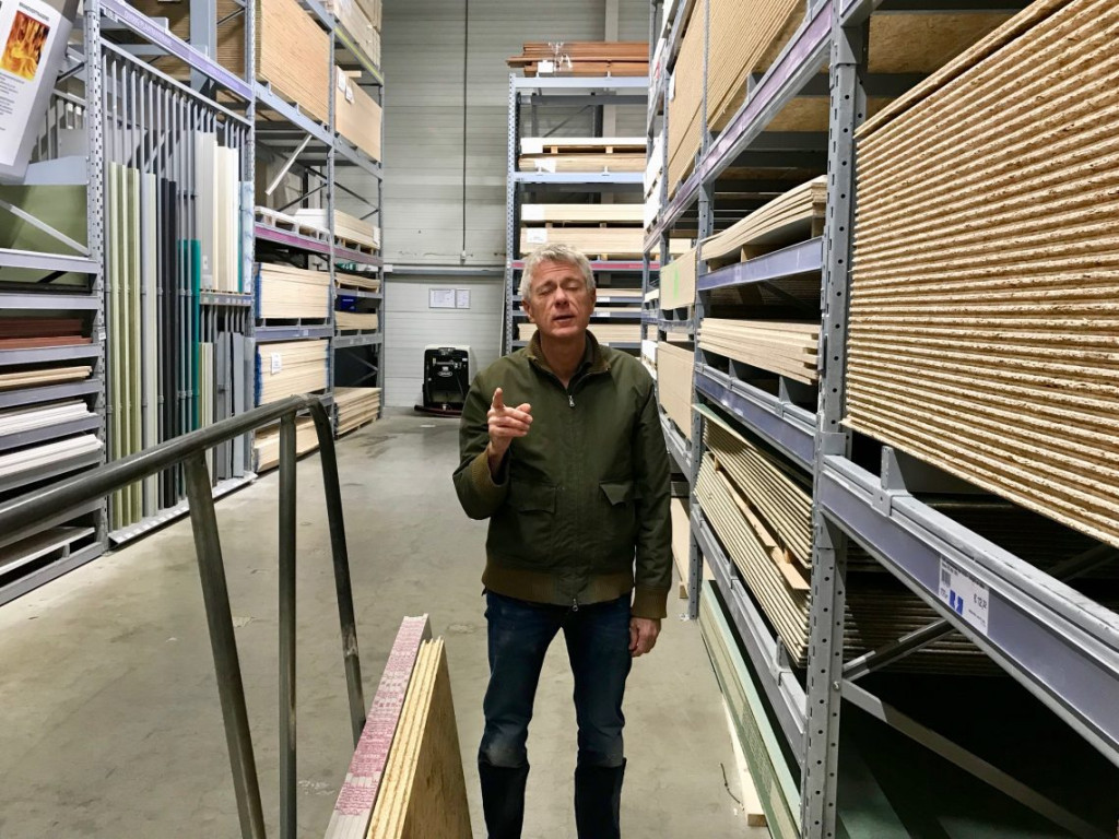 Maar wat echt beter is samen dan alleen is grote platen materiaal halen. Zoals gips en OSB (oriented strand board)-platen. (Zeg maar: vloerplaten, die ook op de muur kunnen). In de auto naar de Bouwmaat stelde ik vrolijk vast dat het met Trump nu toch snel gedaan zou zijn, omdat de beurzen zo kelderen. En dat Mueller volgens mij lekker bezig is. Nou, dat ziet Hessel heel anders. Het USA-democratisch stelsel is gewoon rot, dat 10 nare boeren hetzelfde kunnen besluiten als een stad vol weldenkende mensen en we mogen inmiddels wel stellen dat het kapitalisme definitief heeft gewonnen etc. Ik besloot de moed er toch in te houden en maakte om te beginnen een foto van mezelf in de Bouwmaat camera.