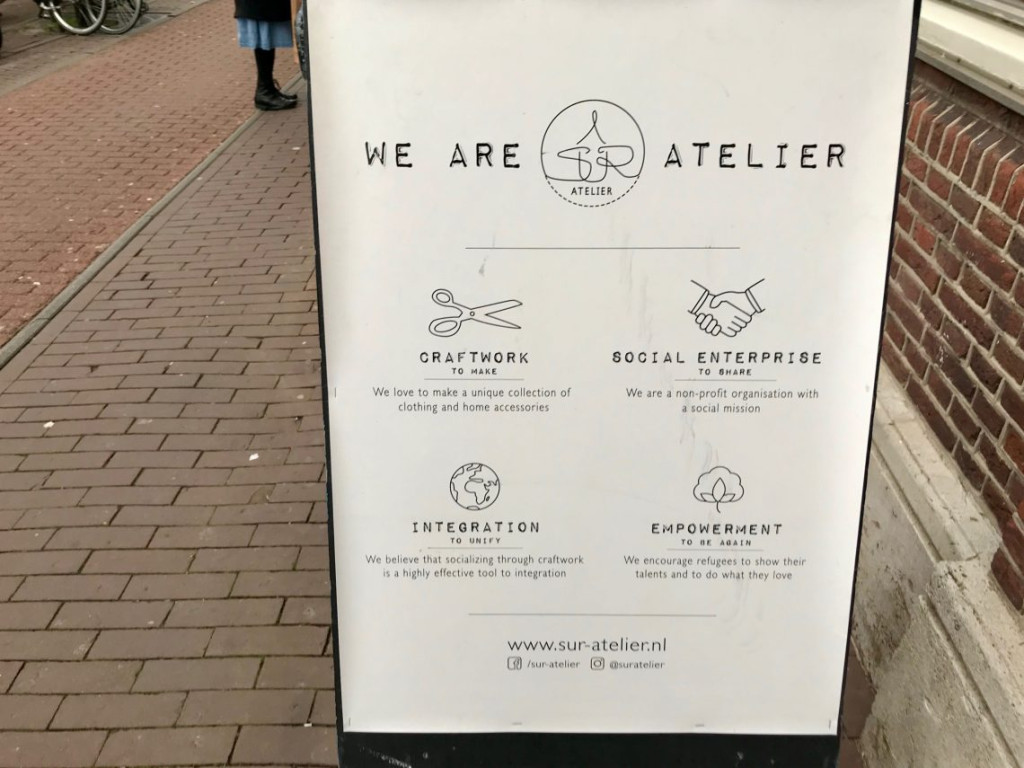 En op de terugweg langs Sur Atelier. Dat is dan ook weer zo’n mooi initiatief! Tip van een van onze lezeressen. Vluchtelingen maken o.a. supermooie kleding, kussens en dekens en kunnen dat verkopen, maar er is ook een leuk koffie hoekje etc. Het kapitalisme heeft dus nog niet helemaal 100% gewonnen denk ik dan. Wegens het consuminderen kon ik niets aanschaffen deze dag.