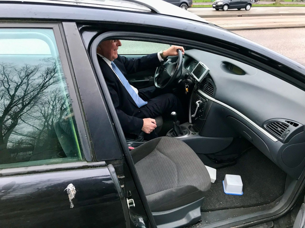 Hij zei dat hij net twee vrienden op het treinstation oid had afgezet, maar dat een van hen zijn portomonnaie in de auto had laten liggen. Hij vroeg of ik die meneer kon bellen. De vriend nam niet op. Maar hij bleek in het centrum van Amsterdam te wonen, dus ik zei dat ik de portomonnaie wel mee zou nemen en ‘m daar vanavond of morgen zou brengen.