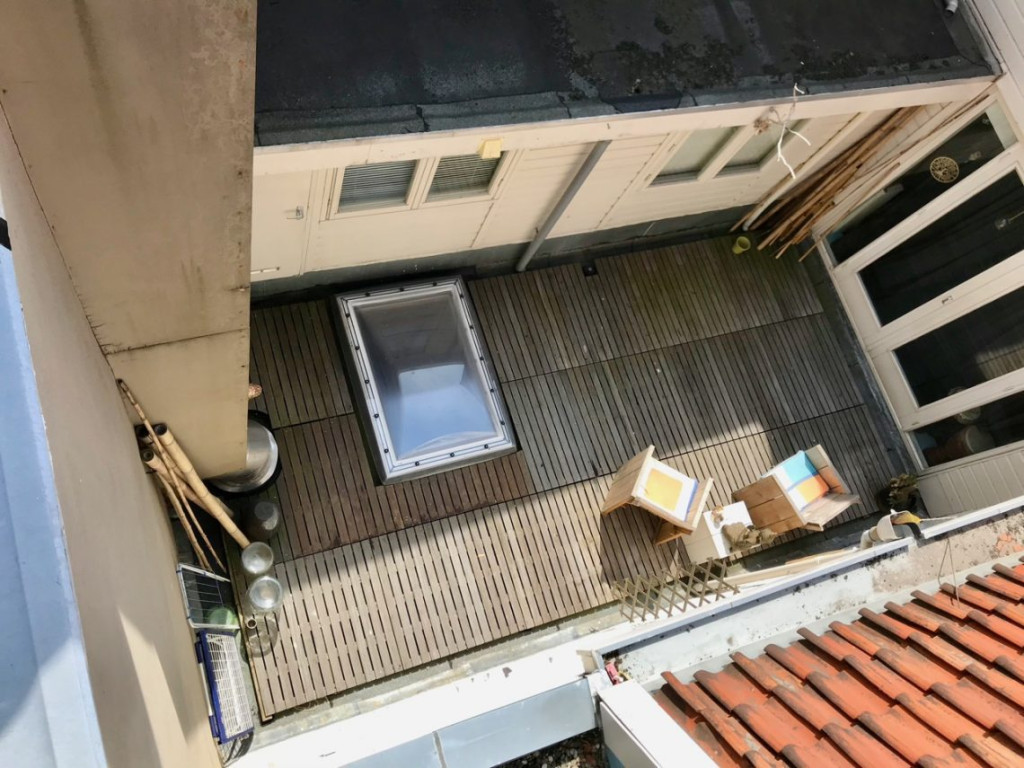 Ik kon het niet laten om meteen stiekem ons bovenhuisje te fotograferen. De huurder had alle ramen verduisterd, dus ik zat niet al te veel in zijn privacy, vond ik. Ik kon door het dakraam nauwelijks zien of ik thuis was, zo fijn reflecteert dat.