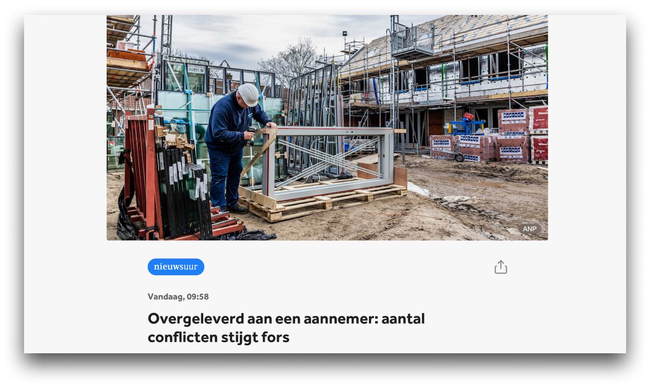 Mijn oog viel op een nieuwsbericht bij de NOS. “overgeleverd aan een aannemer