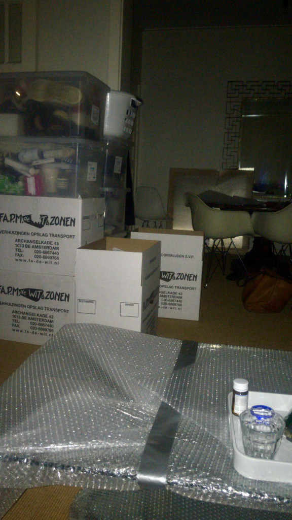 Mijn partner Mijntje had al gezegd dat ik maandagnacht geen oog dicht zou doen, maar ik dacht dat het wel mee zou vallen. Nou, dat viel niet mee. Opeens vond ik het allemaal heel spannend worden. Ondanks onze reuze goede planning hadden we maandag na het avondeten nog aardig wat dingen moeten inpakken (de dozen met ‘dingen divers’) en toen ik de laatste keer bij Hessel de trap afliep vloog het me behoorlijk aan.