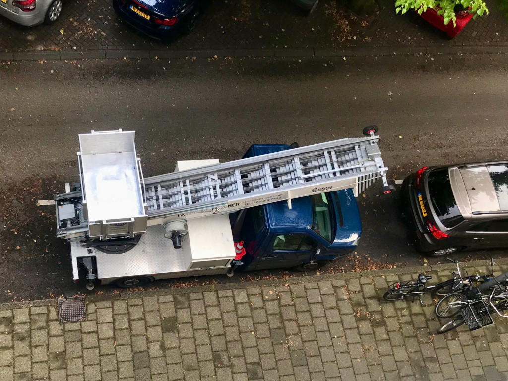 En een onverlaat in een BMW (zal je altijd zien) was gaan parkeren in ons afgezette vak. Bloedirritant, maar de verhuizers hadden er geen last van.