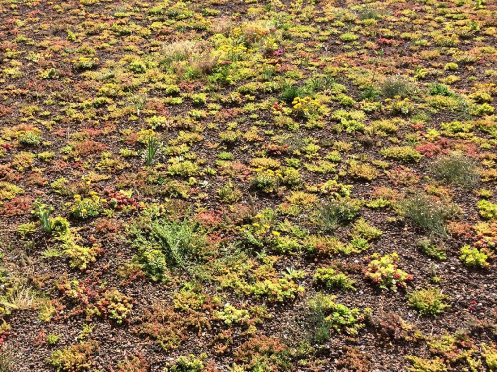 Toevallig zijn ze bij ons in Haarlem de parkeergarage aan het opknappen. Hij wordt vergroend. Er is een enorm groot dakveld, waar vroeger asfaltpapier op lag. Sinds een paar maanden is dat veld omgetoverd tot een vetplanten-bloemetjes-tuin. Het is allemaal nog aan het groeien en aan het settelen, maar het ziet er nu al heel vrolijk uit.