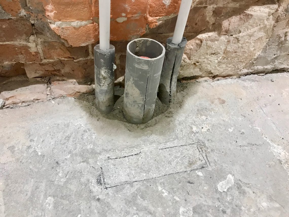 Ik heb eerst alle leidingen in een dikke isolatiemantel gestoken, toen heb ik van onderaf alle gaten met Duct-tape afgeplakt, en de hele kleine gaatjes waar geen beton in zou passen heb ik met PUR-schuim afgedicht.