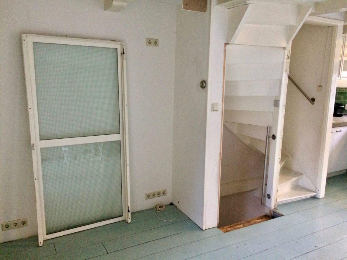 De volgend stap is straks de nieuwe trede netjes aftimmeren, en de deur een stukje dieper in de kamer terugplaatsen.