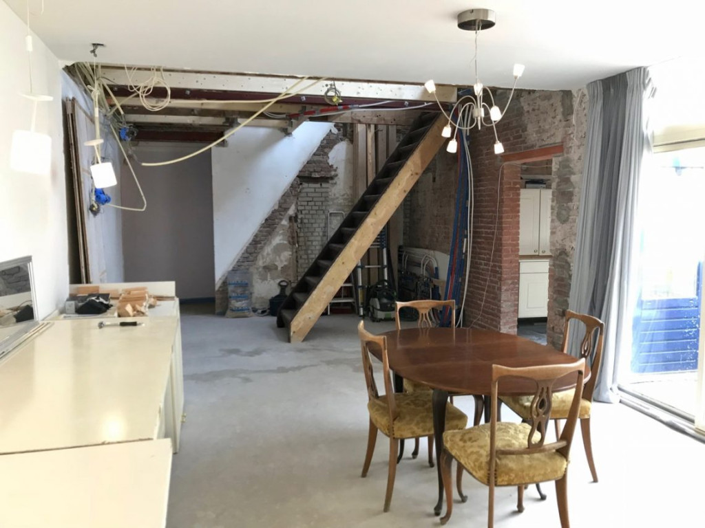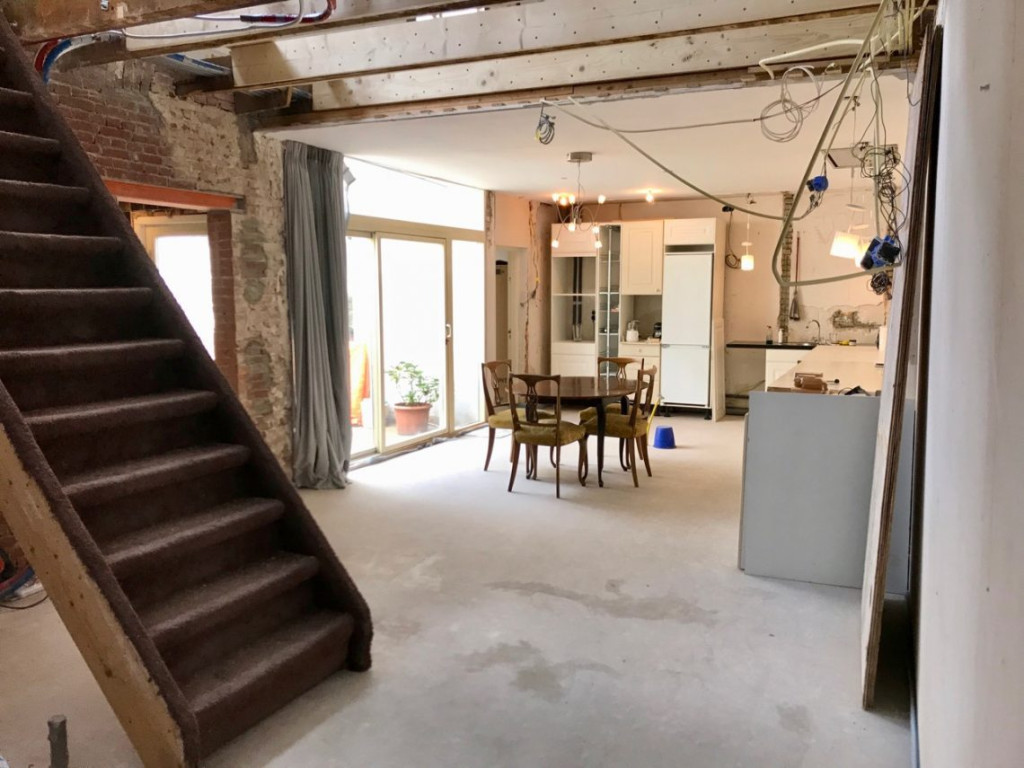 Denk hier wat stucwerk, een paar potten verf en een vrolijk behangetje bij en je ziet wat een machtige ruimte het aan het worden is.