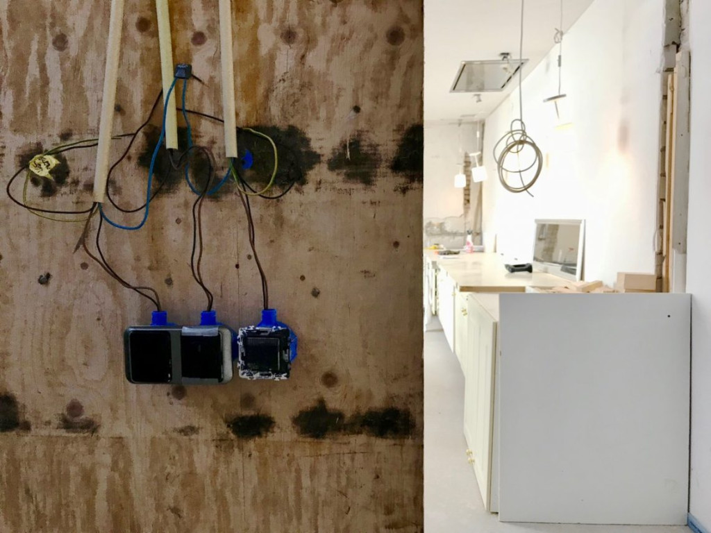 Eigenlijk valt er vandaag niet al te veel te melden. Ik heb nog wat draad getrokken door de spotjesleidingen, ik heb een vast aansluitpunt voor de toekomstige rookmelder gemaakt en de keukenlampen gaan nu aan en uit met de tijdelijke schakelaars, die al op hun toekomstige plaats zitten.