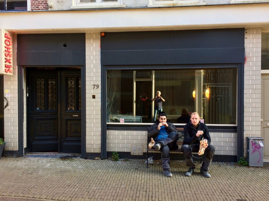 Op de foto zijn we te zien tijdens een korte bouwvak-lunch op het bankje buiten, en daarna klusten we weer door.