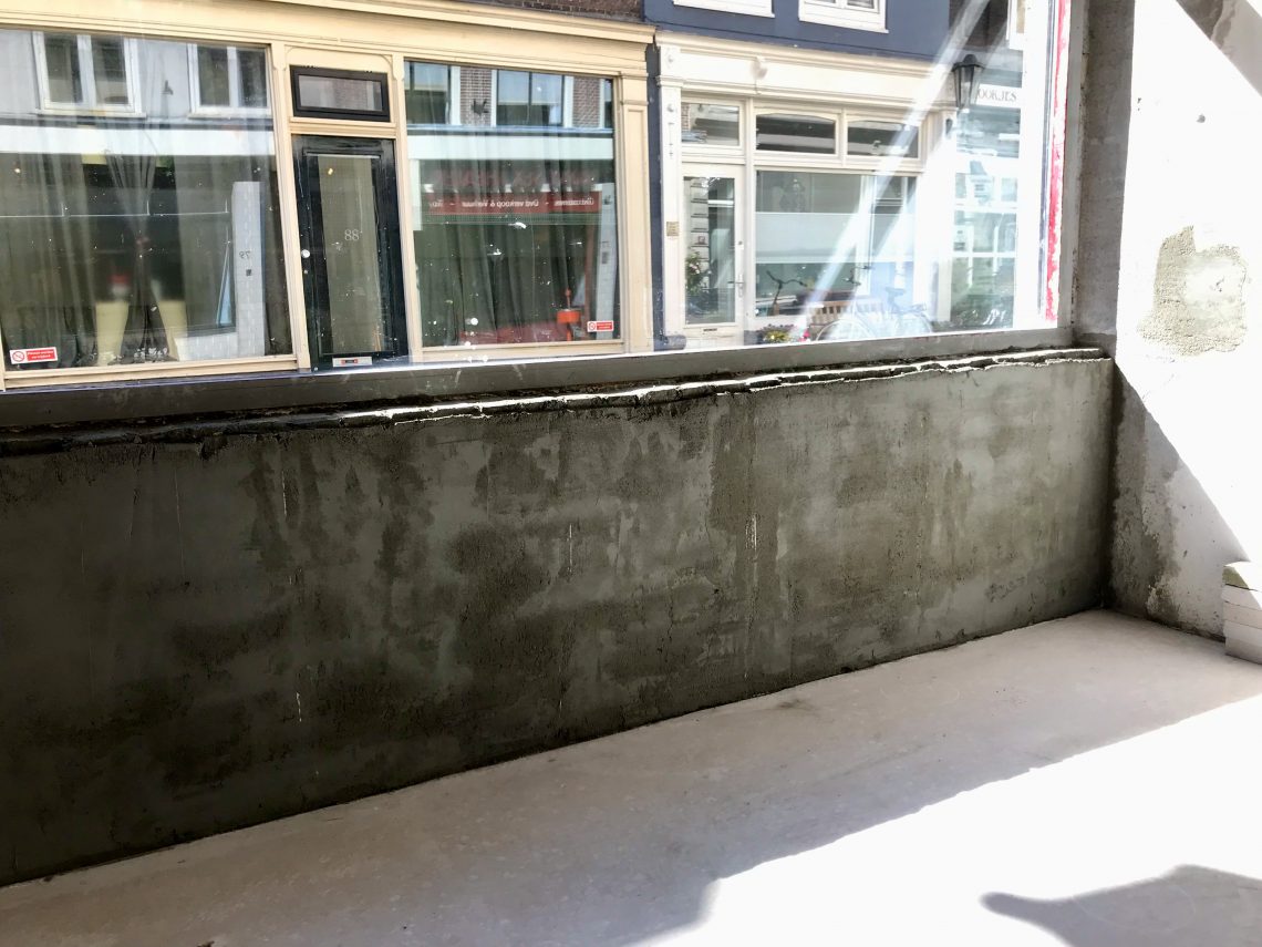 Eerst een met een dun mengsel van water en cement de muur “aanbranden”,