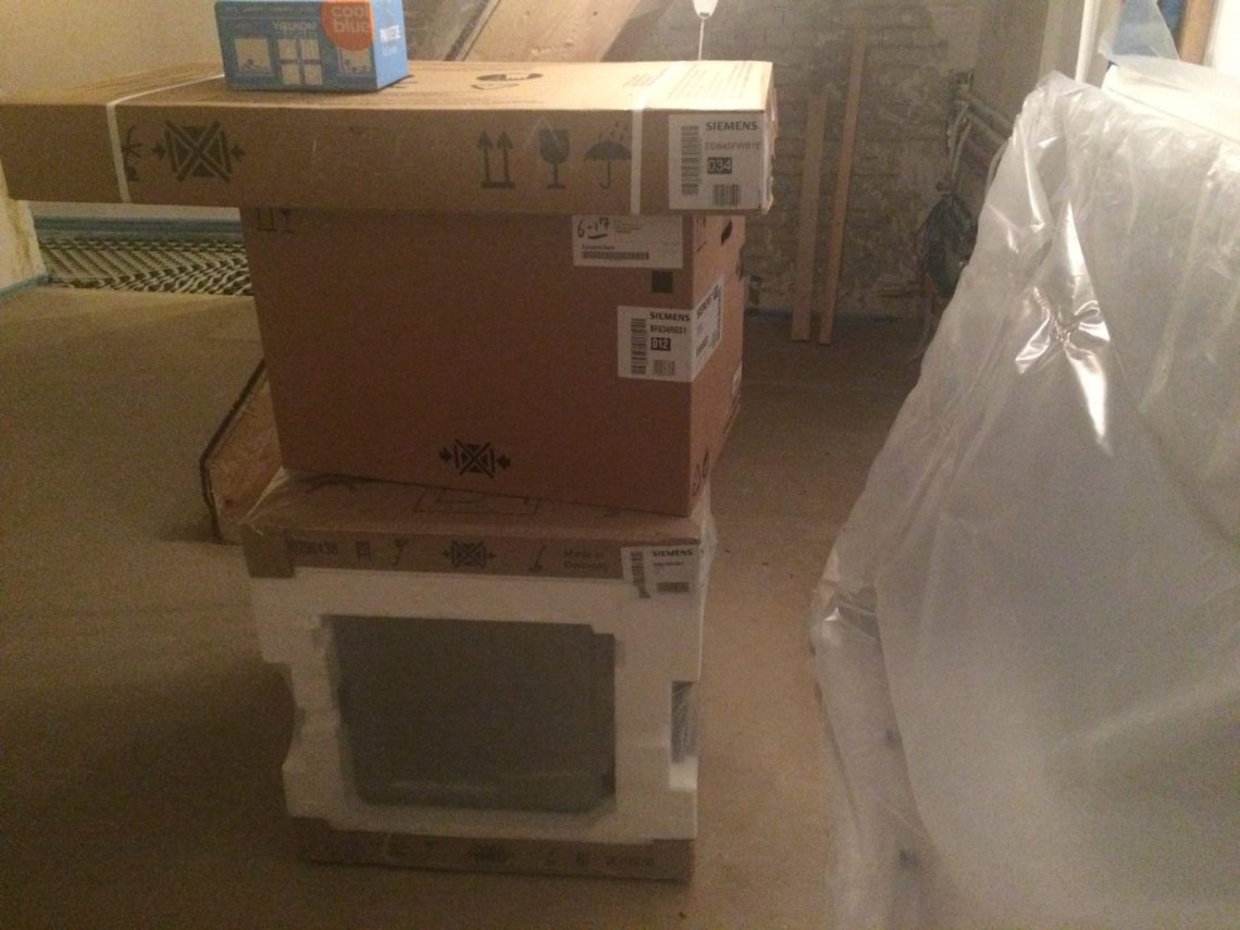 Het is een beetje gek, maar om heel eerlijk te zijn: op tweede kerstdagmiddag hebben wij maar liefst 8 dingen gekocht voor ons nieuwe huis. We hebben besloten onze keuken voor de komende jaren voorlopig op te bouwen met oude/bestaande materialen (en een nieuw goedkoop aanrechtblad), maar wel de apparatuur alvast aan te schaffen. Want dat kan in een eventuele nieuwere keuken ook weer gebruikt worden. Ik had met liefde de huidige koelkast en oven gebruikt, maar ben toch heel blij met dit frisse begin. Want wat er allemaal precies met die koelkast was uitgespookt weet niemand en de afsluitstrips van de deur waren oud en kapot, van de oven hing de deur scheef in zijn scharnieren, dat soort dingen. Dus nu gaan we elektrisch bakken, en ook elektrisch op inductie koken. Dat komt goed uit, want in het Haarlems dagblad stond van de week dat het gas in Haarlem binnenkort op is.