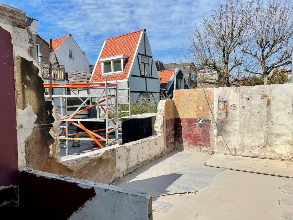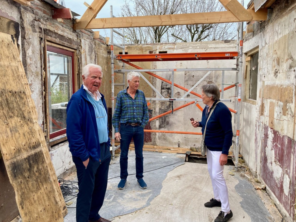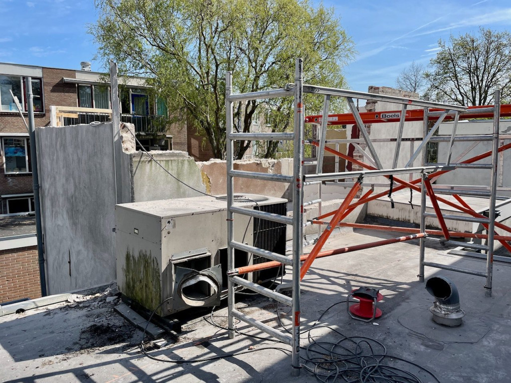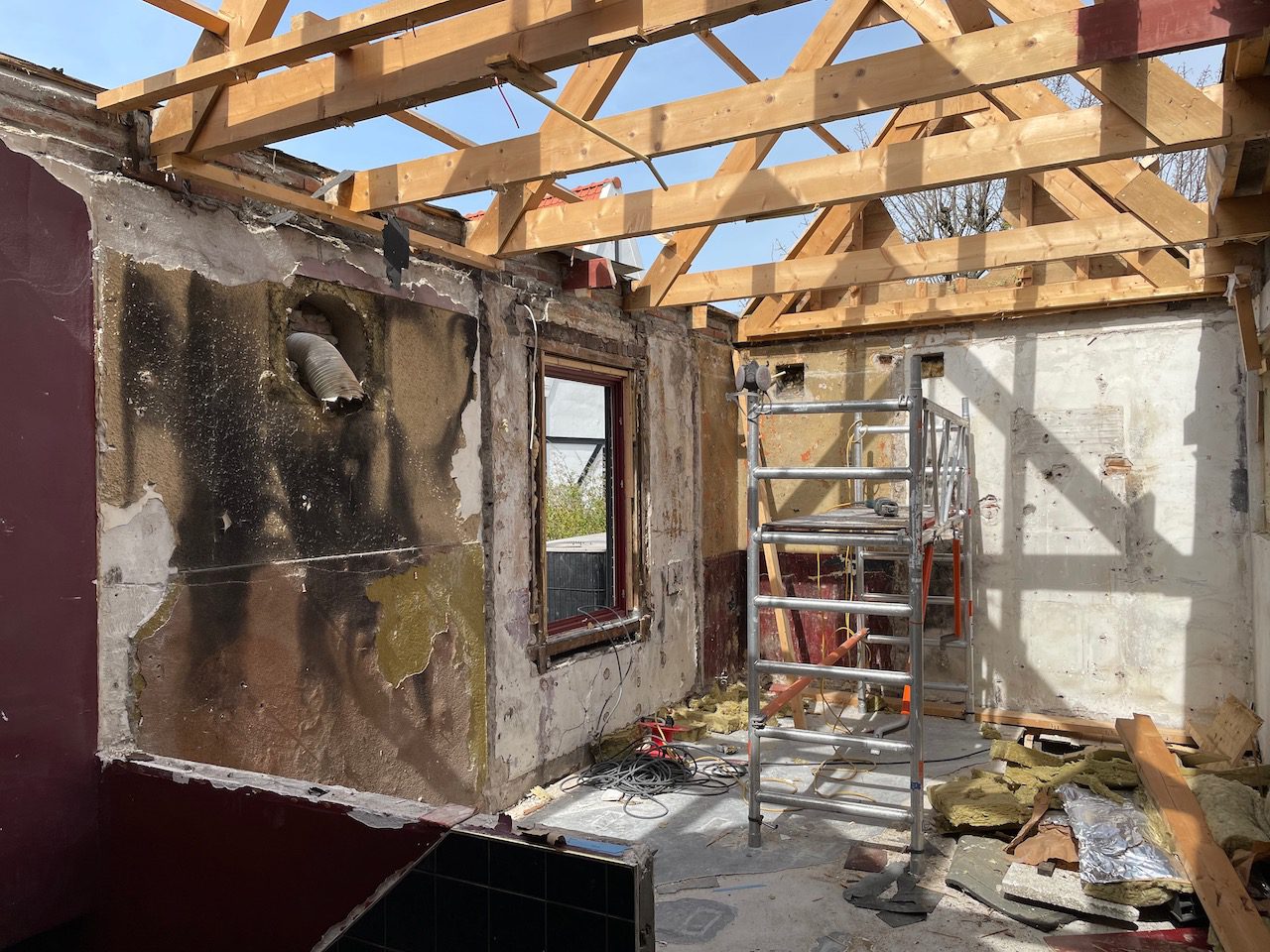 Ik heb de hele week als een kip zonder kop tussen de werklieden doorgewandeld. Het is heel vreemd om zelf niks te doen. Het lukte me gelukkig wel heel goed om me niet overal mee te bemoeien. De Vlasmannen weten zelf al waar ze mee bezig zijn. Het is een compleet bouwproces, maar dan achterstevoren. Normaal denk je goed na welke krachten er spelen als je iets op gaat bouwen, nu moet je goed bedenken wat het betekent als je iets afbreekt. Kan je dan later nog steeds bij dat ene hoekje komen? Krijg je niks op je hoofd? Stort er niks in?