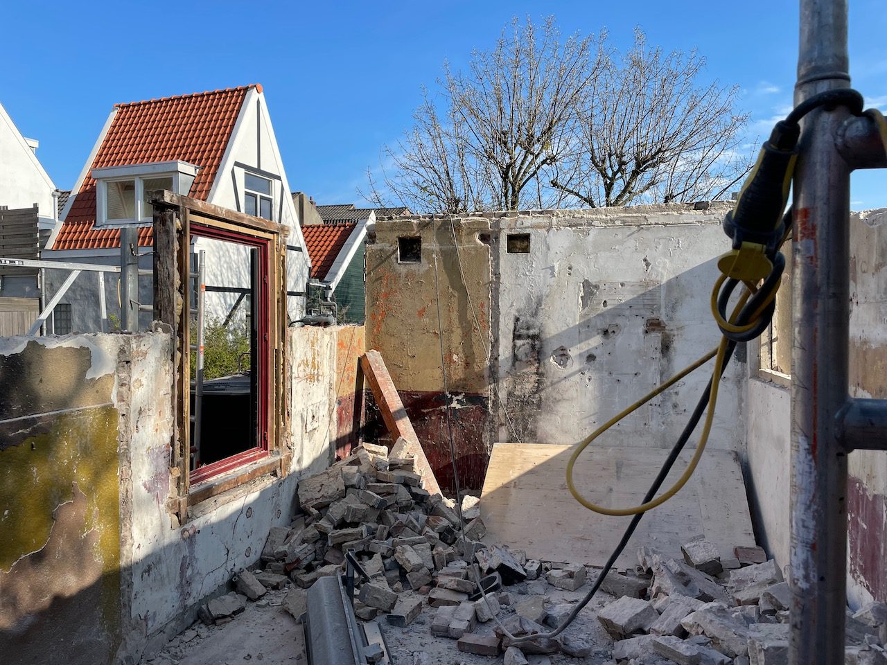 Hierboven zien we de oude situatie en het begin van de sloop.