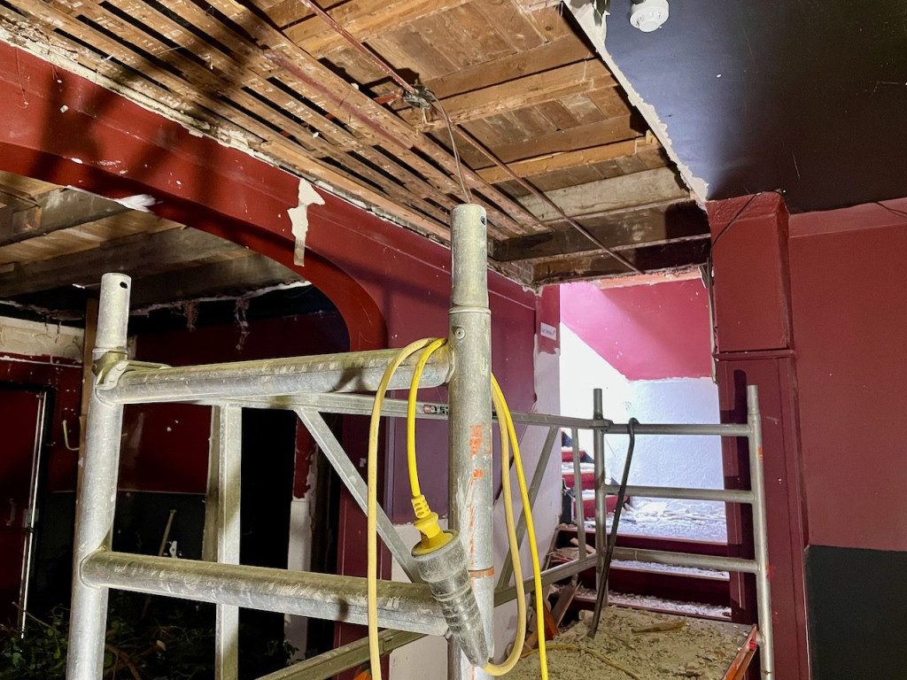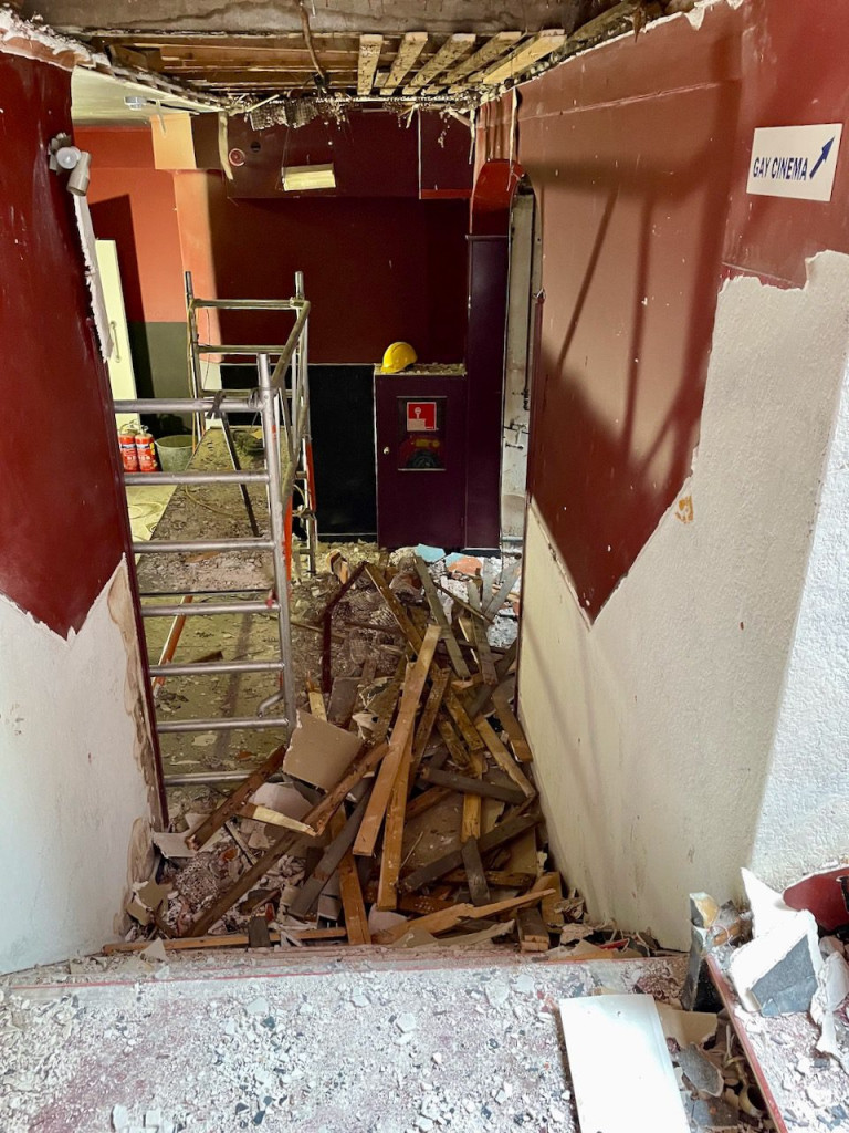 Kort gezegd: het achterhuis van het theater en een stukje op de begane grond gaan tegen de vlakte.