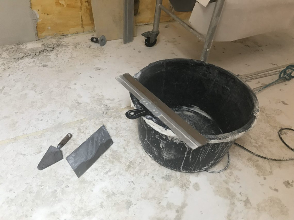 Kijk, een blogje om 18:15, dat geeft al aan dat er vooruitgang is. De vorige muur, en meteen de eerste muur in ons huis die ik probeerde te stuuken, zorgde er voor dat ik pas ’s avonds rond 21:00 thuis was. Wat een chaos had ik daar gemaakt, met alle aangekoekte gereedschappen die nog schoongemaakt moeten worden.