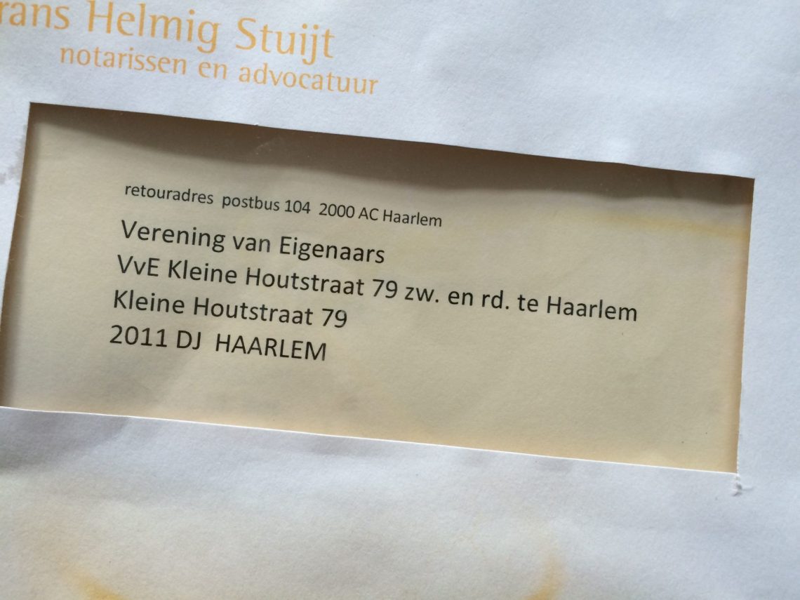 We krijgen eigenlijk nooit post. Af en toe per ongeluk een vies blaadje, maar dat is dan voor de buren bestemd. Deze ochtend was dat anders. Er viel een officiële brief van de notaris door de bus. Er was nog extra informatie nodig betreffende de lopende verplichtingen van de vereniging van eigenaren.