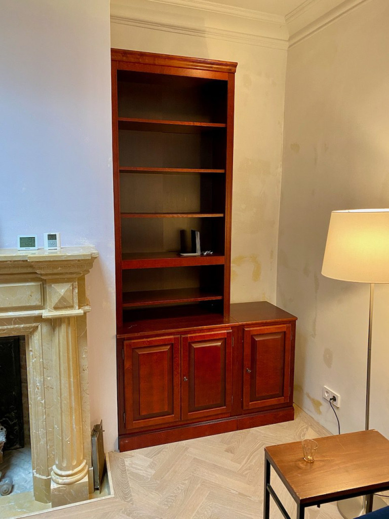 De rest van de dag ben ik bezig geweest met de boekenkast. Aan de rechterkant van de schoorsteen paste het nog niet. De kast was te breed.