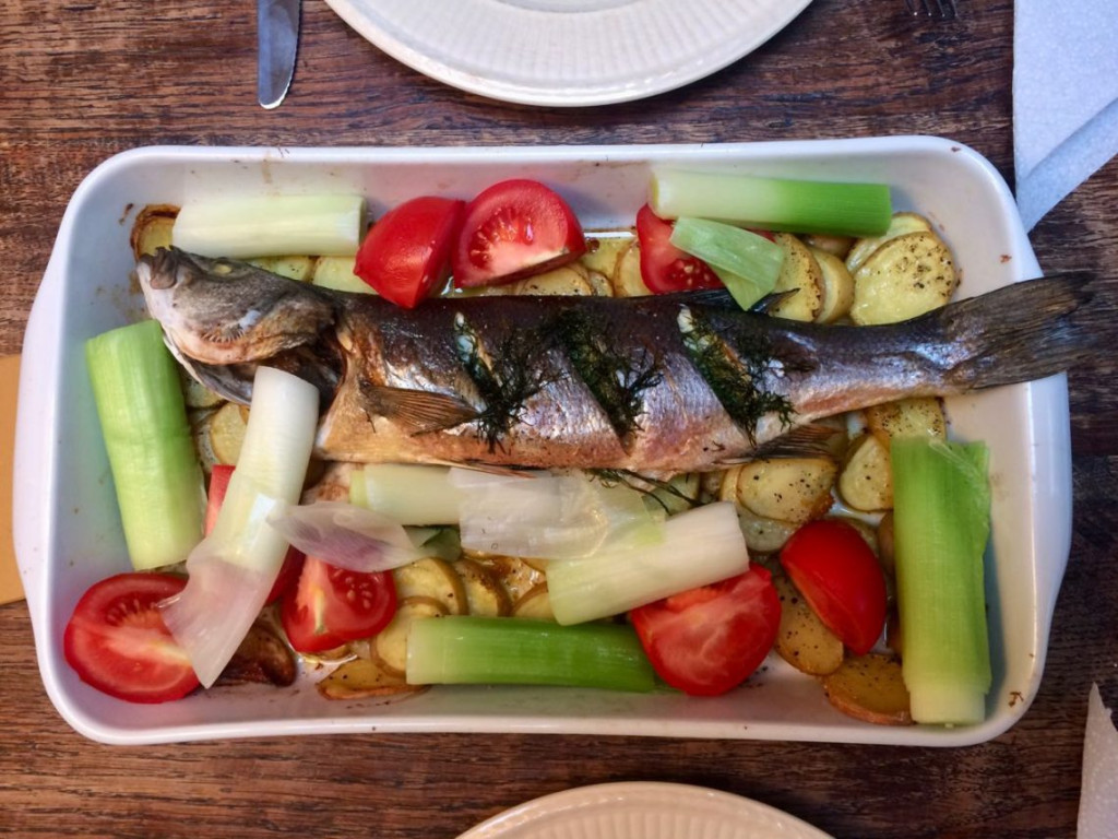 De vis is inmiddels gaar, en wij gaan lekker eten.