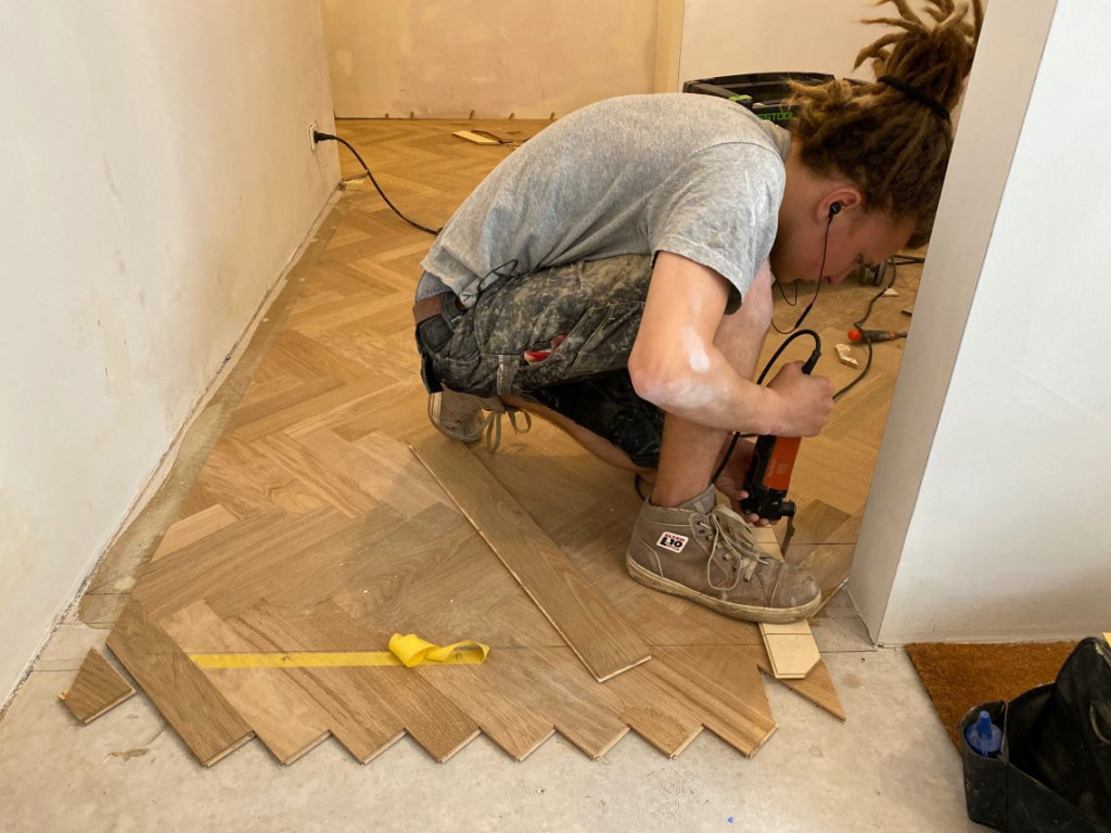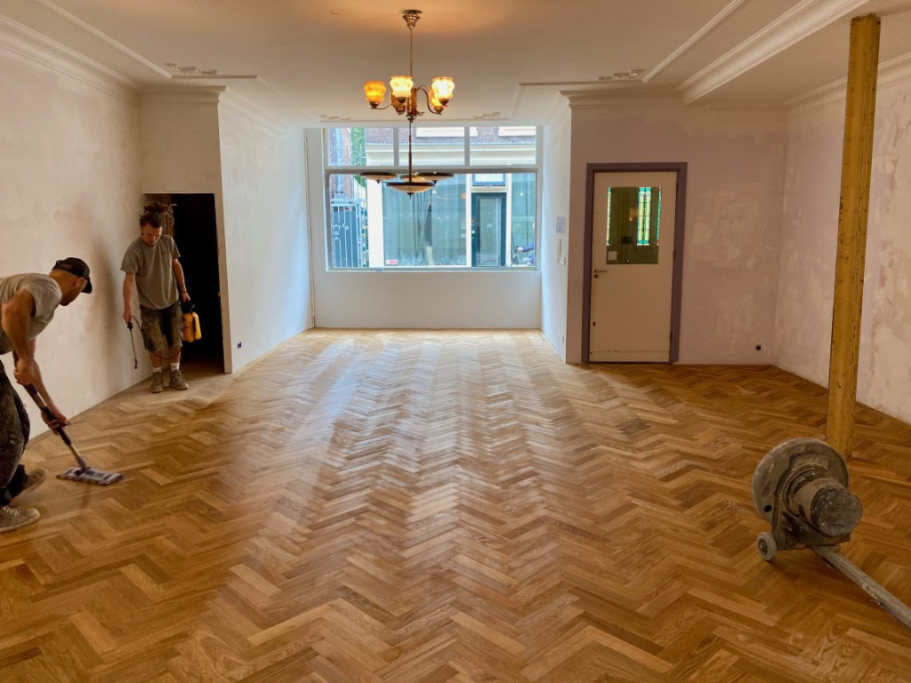We hebben in totaal 5 verschillende parketteurs gezien, maar het hele zaakje stond onder leiding van Ahmad. Dit was zijn vloer.