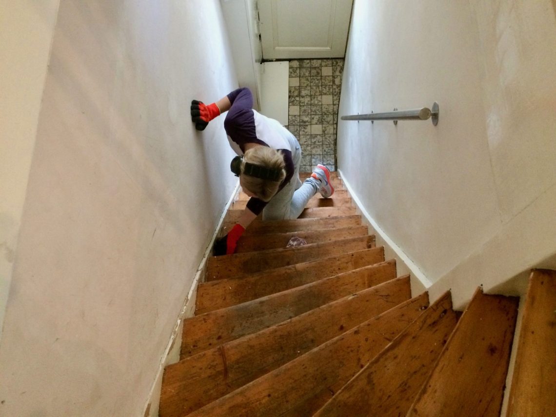 En ik ging de benedentrap schoonmaken. Eerlijk gezegd vloekte ik af en toe bijna, want tjonge dat was het meest vieze werkje wat ik tot nu toe had gedaan. Maar heerlijk nu het fris is, en geschuurd en afgekrabt, echt iets wat ik al tijden wilde doen.