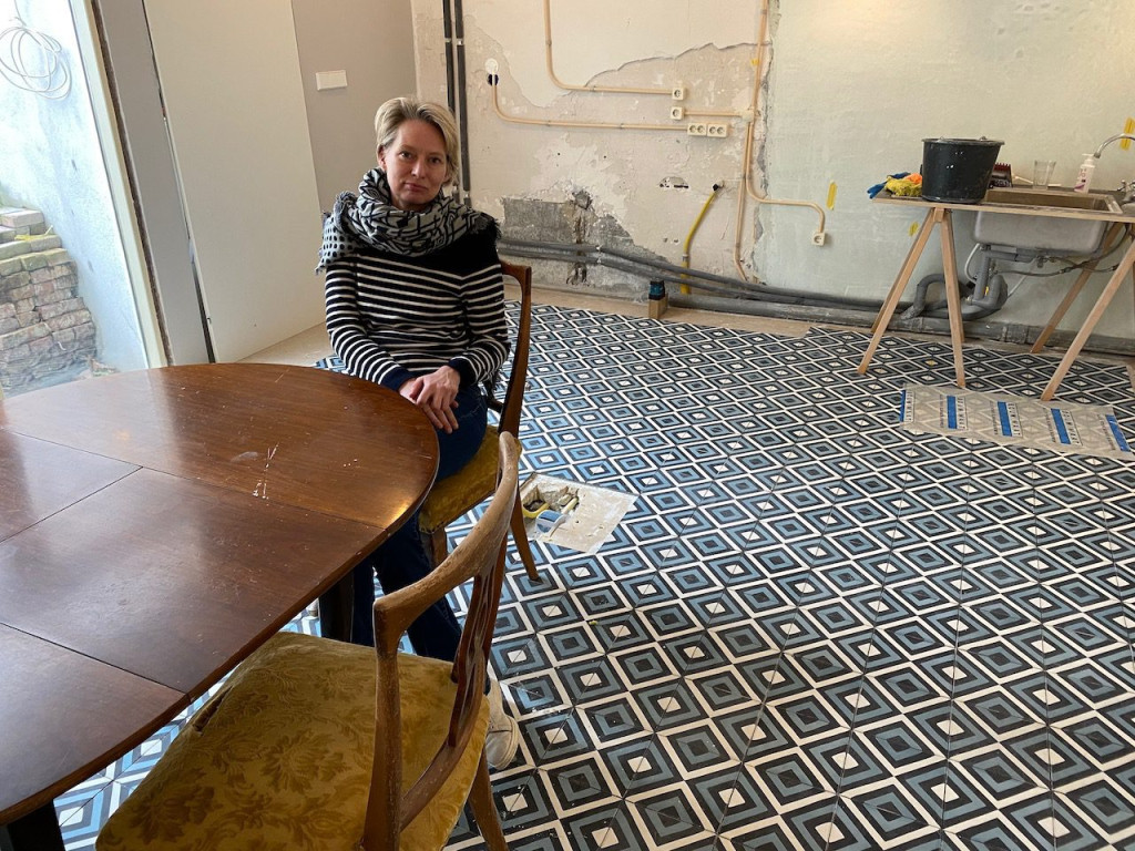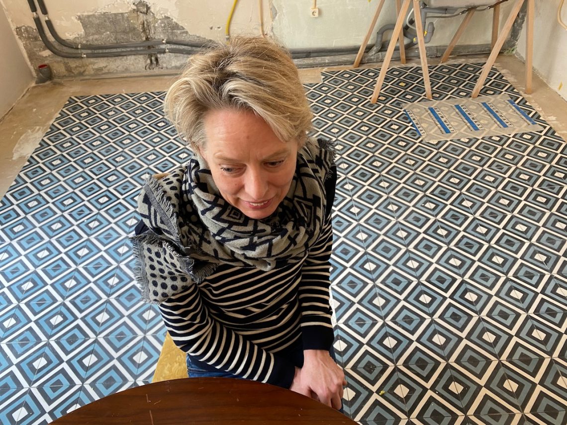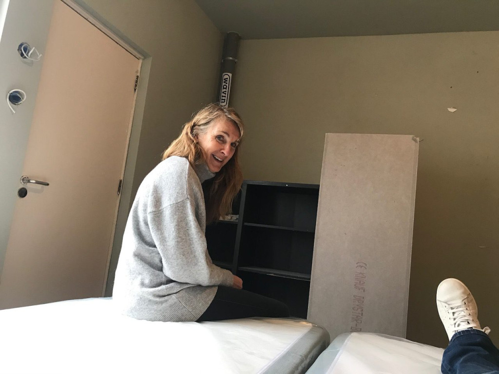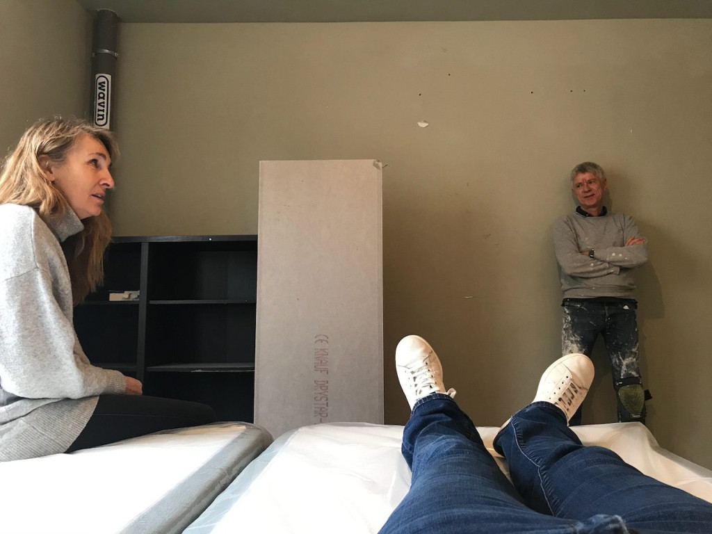 Daar ging de deurbel! Hoera het was Monique. Ze kwam alles bekijken en bijkletsen. De vloer in de keuken vond ze druk. Maar op de slaapverdieping ervaarde ook zij de serene rust..
