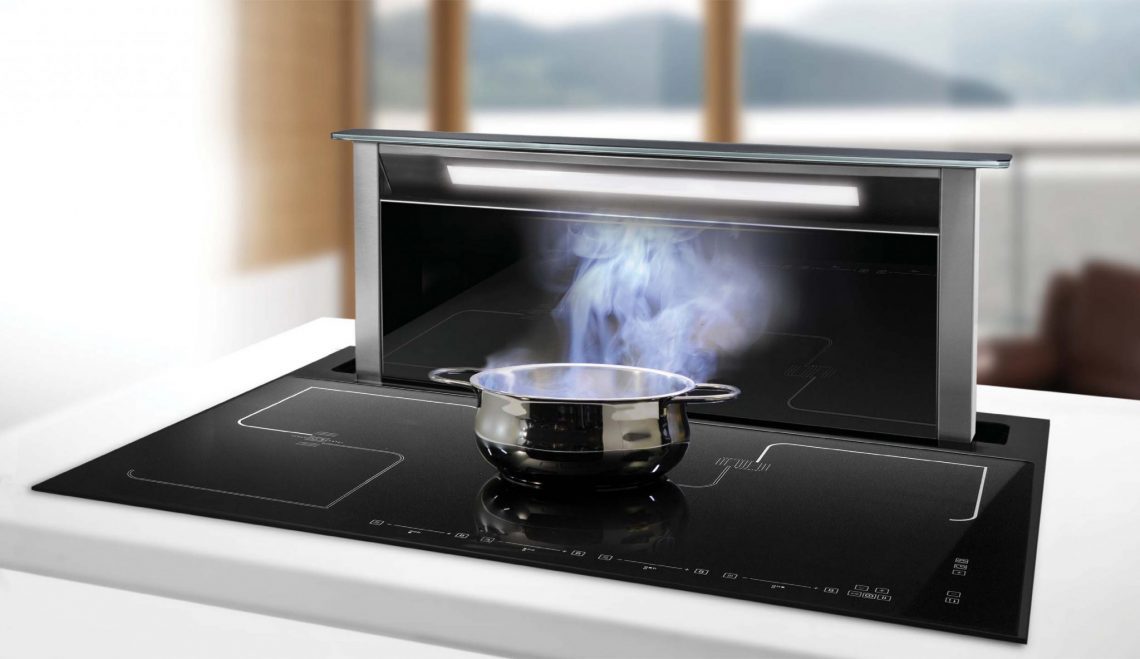 De tweede fabrikant die ik belde, was nog eerlijker. Ik had de commercieel directeur himself aan de lijn. “Weet u, toen we de downdrafts uitvonden, toen waren de kookplaten nog lekker klein. Als een pan vlak bij de downdraft staat, dan zuigt hij alle lucht keurig weg. Maar met die enorme 5-pits inductieplaten van tegenwoordig, gaat dat niet meer lukken. De pan die vooraan staat, die staat te ver weg. Daar helpt geen losse motor of breed afvoerkanaal aan” Daar keek ik van op. Je hebt toch niet vaak twee verschillende fabrikanten aan de lijn, die beiden zeggen dat hun product eigenlijk niet deugt, wat de winkeliers er ook over beweren.