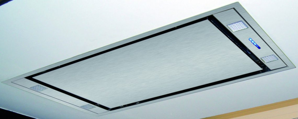Wij willen voorkomen dat er iets aan onze lange keukenmuur komt te hangen. En met een afzuiger in het plafond voldoen we keurig aan die wens. Bovendien, zo legde de fabrikant me uit, werkt een plafondafzuiging eigenlijk het allerbeste. Warme lucht stijgt uit zichzelf al op, en gaat dus automatisch naar het plafond. Bovendien heeft ook de plafondafzuiger een losse motor, die veel sterker is dan een gewoon motortje in een gewone afzuigkap. 950 Kuub per uur zuigen we zonder moeite weg. Die motor staat in ons geval vlak bij de plek in de achtergevel waar de afgewerkte lucht naar buiten geblazen gaat worden, dus het scheelt ook al een flink aantal meters wrijving ten opzichte van de downdraft.