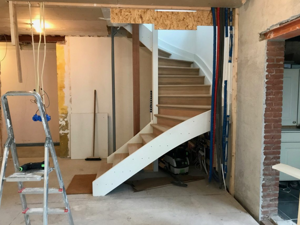 Het uitrekenen, aftekenen en uitzagen ging razendsnel. Ik heb nog een laatste foto gemaakt van onze trap in het vrije veld. Vaarwel ruim uitzicht.