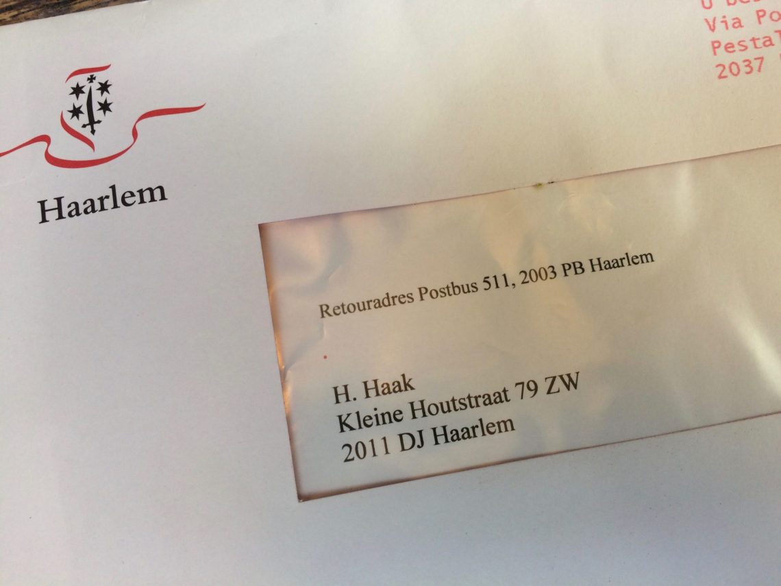 We hadden vandaag post in Haarlem. Dat hebben we anders nooit. Het was een officiële enveloppe van de gemeente. Huh? Wat moeten die dan van ons?