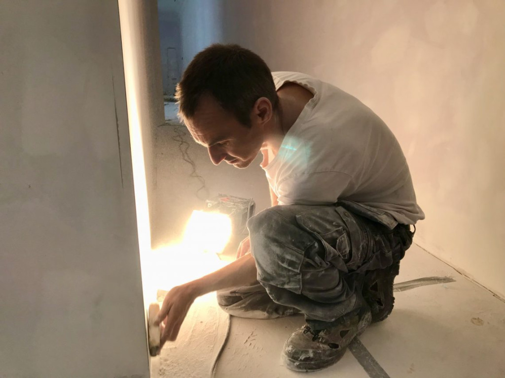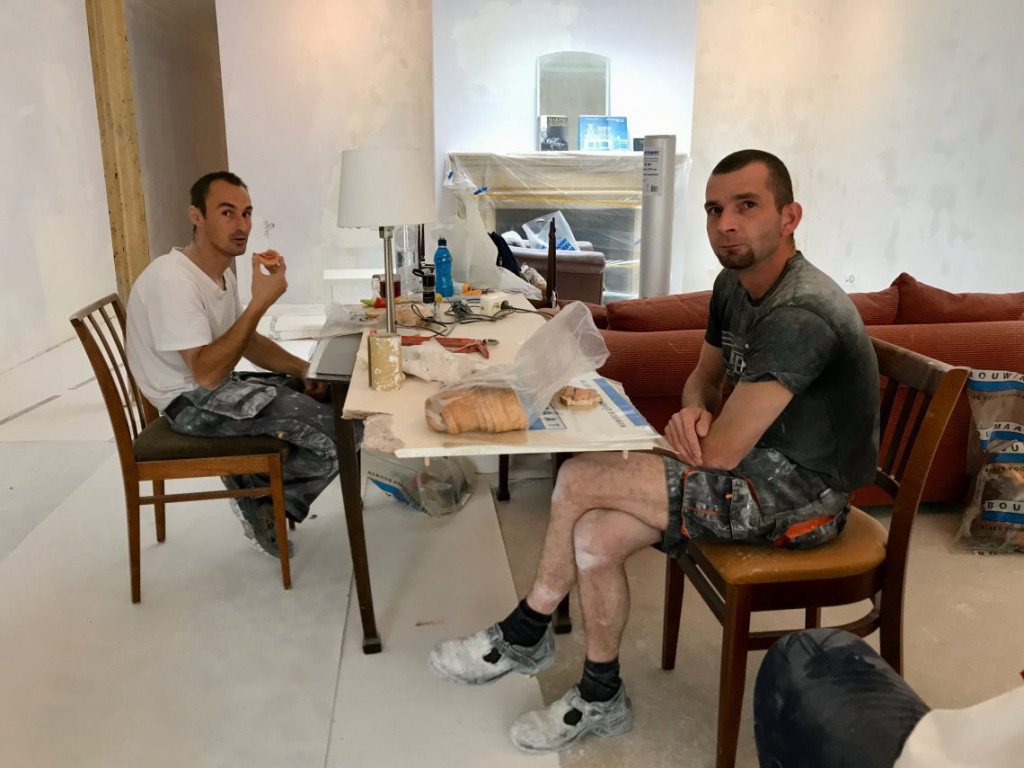 Ik had blijkbaar een mail van Mariusz gemist. De jongens waren gisteren al de hele dag in touw geweest, de woonkamer was al geschuurd.