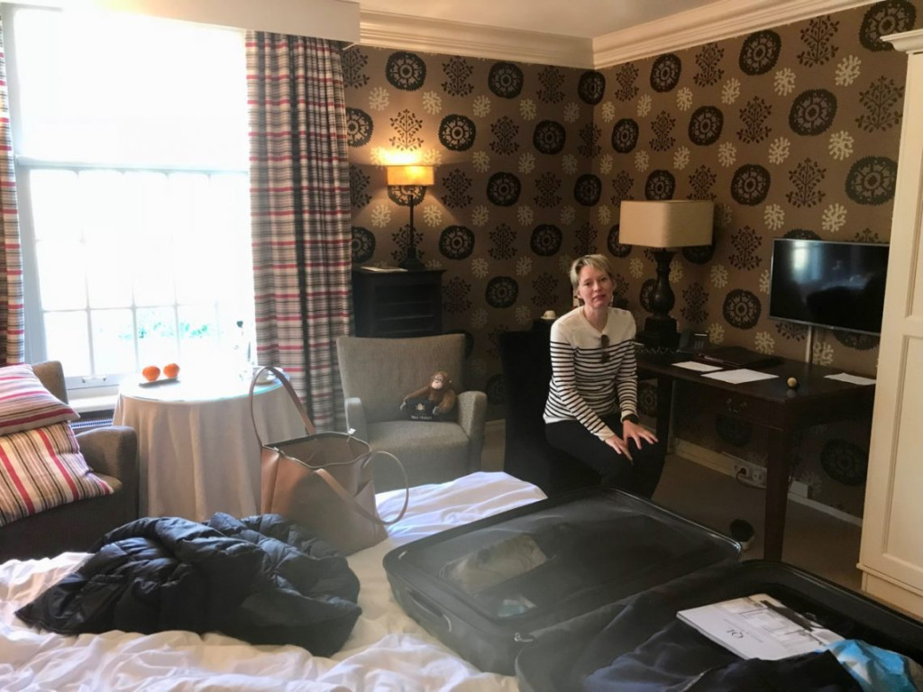 De volgende ochtend -zaterdag- bespraken wij in onze hotelkamer onze eigen nieuwe slaapkamer in Haarlem. Op deze foto zie ik er trouwens een beetje knullig uit. De hotelkamer is iets groter dan onze slaapkamer wordt. We dachten nog even dat we onze slaapkamer als 1 grote kamer zouden maken, dus zonder logeerkamer.