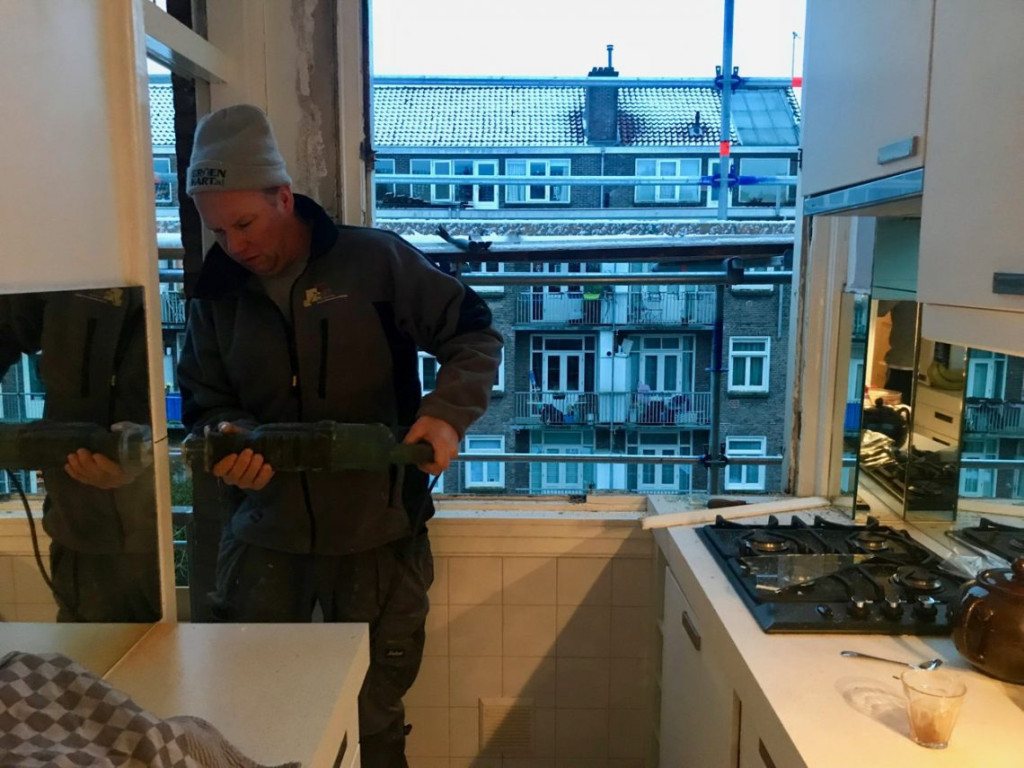 Ik woon nog steeds in mijn eigen huis in Amsterdam aan de VTV Serooskerkenweg, waar ik al sinds mn 23ste een appartement huur. Nu, eindelijk na 20 jaar kou lijden, vlak voordat ik ga verhuizen, heeft de VVE besloten dat we dubbel glas in de achtergevel krijgen. Dat betekent nieuwe balkondeuren in mijn slaapkamer, nieuwe keukenramen en een keukendeur, en in mijn kledingkamertje ook een nieuw raam.