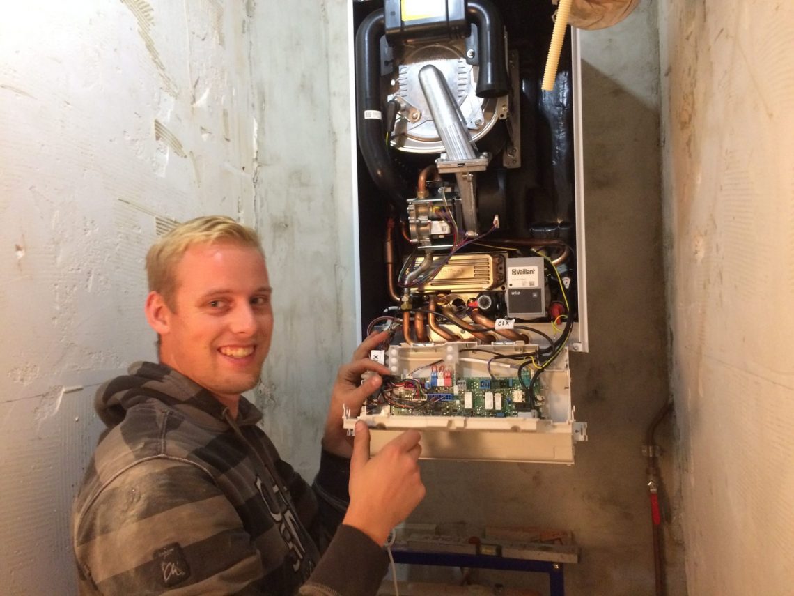 Ongelofelijk hoe snel de boys aan het werk waren. Als eerste werd de kachel die in de hal hangt onder handen genomen. Een half uurtje knutselen later bleek het ding gewoon te werken. Het is nu warm in de woonkamer. Daar had ik echt niet op gerekend.