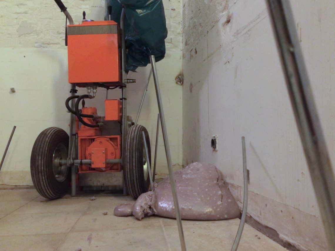 Er was een hoop volk op de been, want Uretek had eigenlijk nooit ruimte om dit systeem binnenshuis toe te passen, en de hele firma wilde dit hoogtepunt in de bedrijfsvoering graag meemaken.