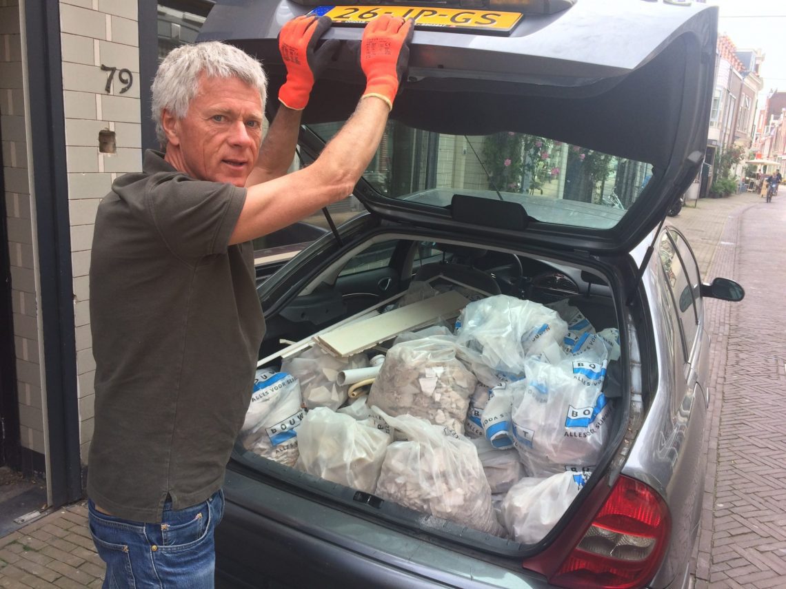 Hessel wilde een klein bestel autootje kopen om te laden en te lossen. Maar onze tweedehands Citroen houdt het prima vol. Er zijn al 2 muren in vervoerd.